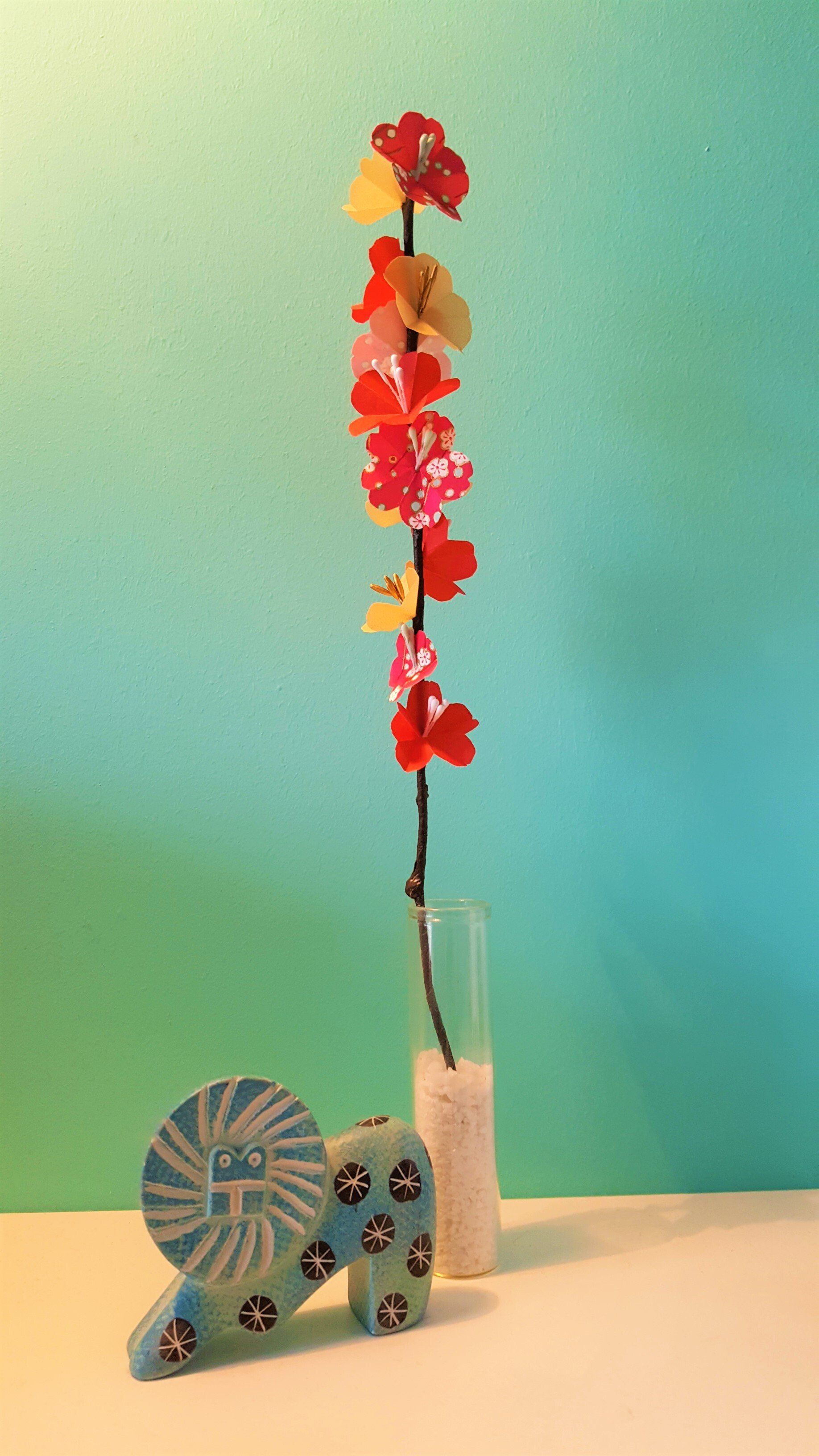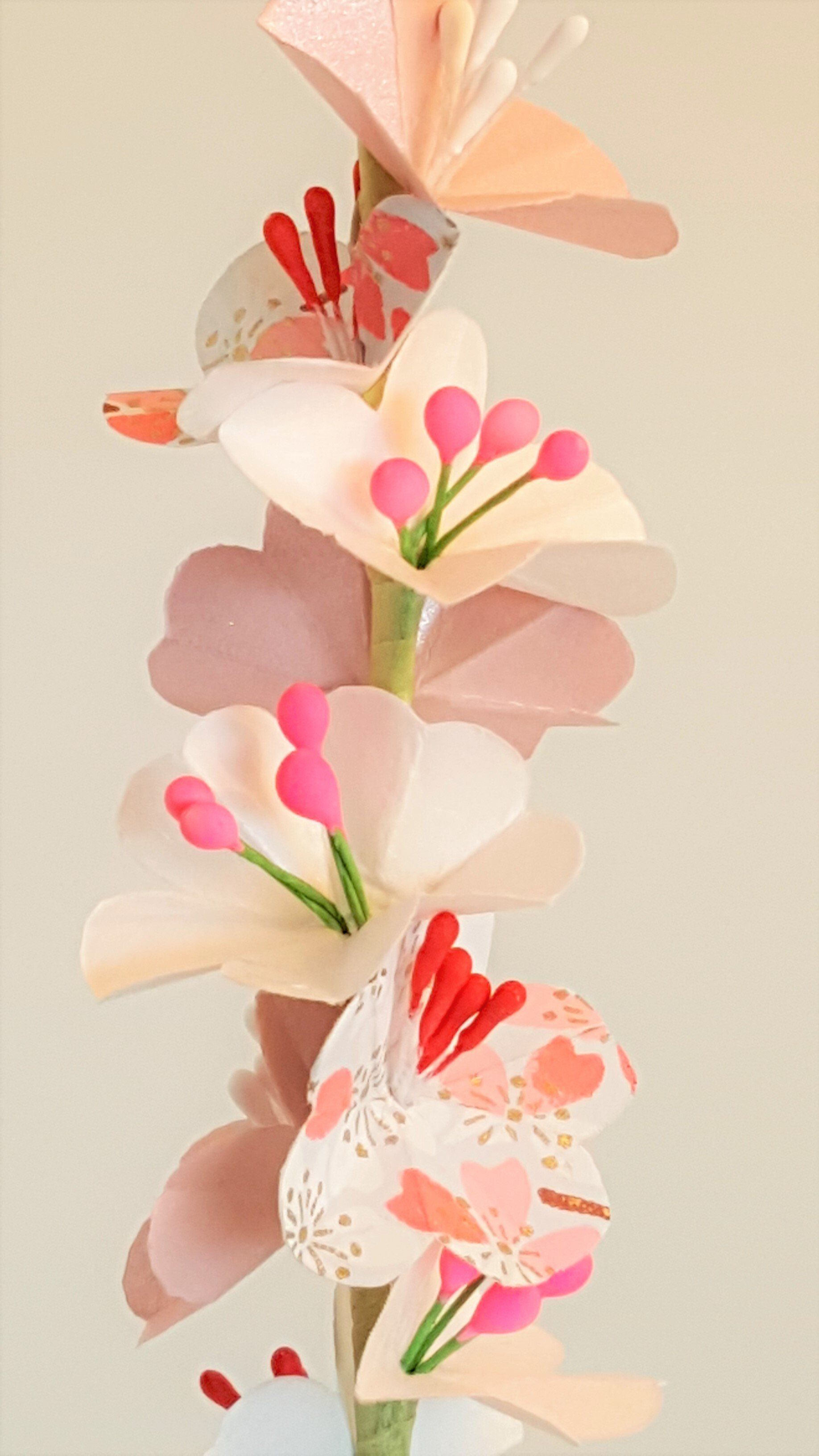 Branches de fleurs de cerisier en papier japonais et tige métal